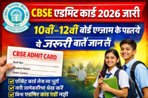 CBSE बोर्ड परीक्षा 2026 में शामिल होने वाले छात्रों के लिए बड़ी अपडेट सामने आ चुकी है। CBSE Admit Card 2026 जारी कर दिया गया है, जिससे अब 10वीं और 12वीं के छात्र अपनी परीक्षा को लेकर पूरी तरह तैयार हो सकते हैं। एडमिट कार्ड परीक्षा का सबसे महत्वपूर्ण दस्तावेज होता है, जिसके बिना किसी भी छात्र को एग्जाम हॉल में एंट्री नहीं मिलती।
